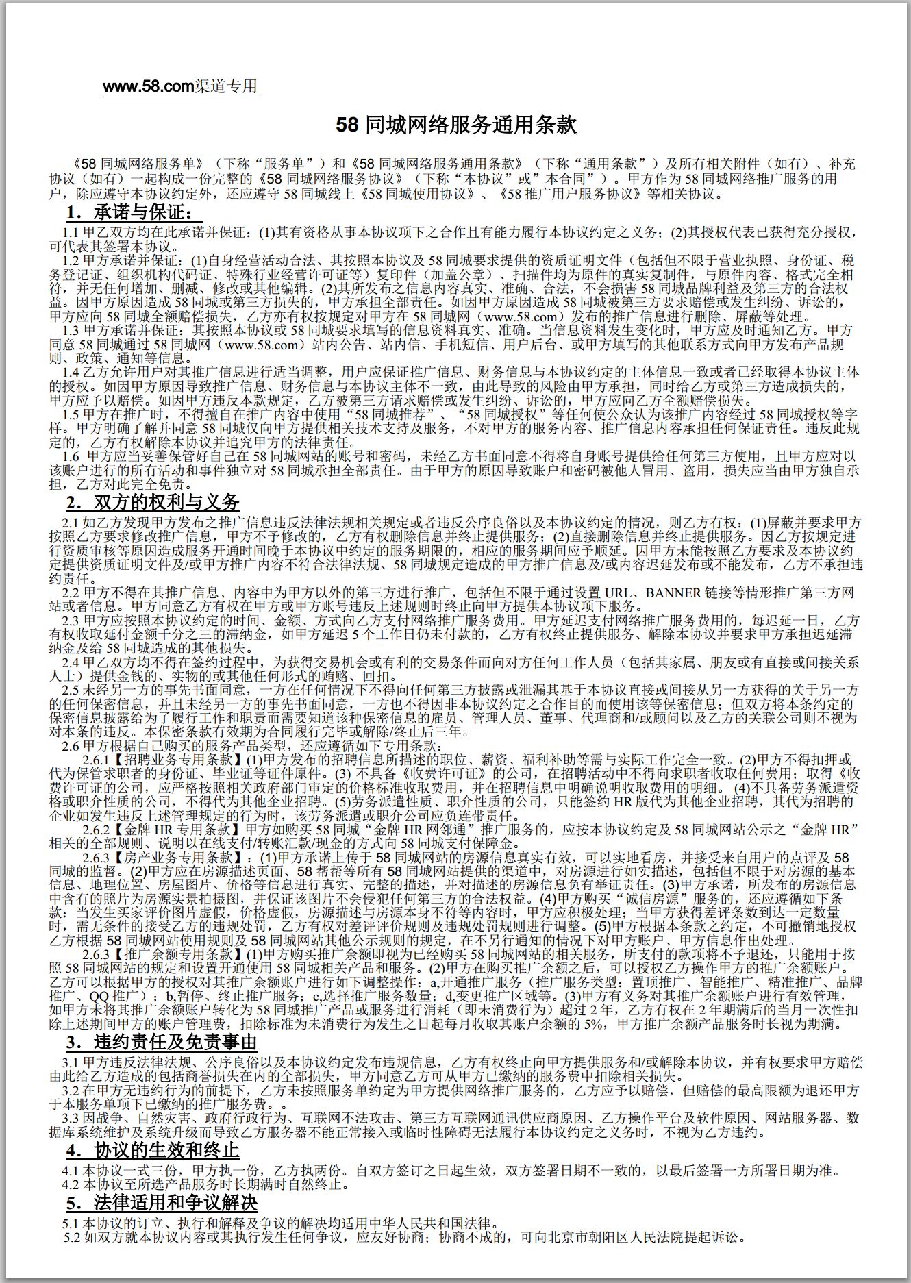 58同城網(wǎng)絡(luò)服務(wù)通用條款下載 文章來源:周口中原傳媒有限公司     瀏覽次數(shù):146次     發(fā)布日期:2015.05.29