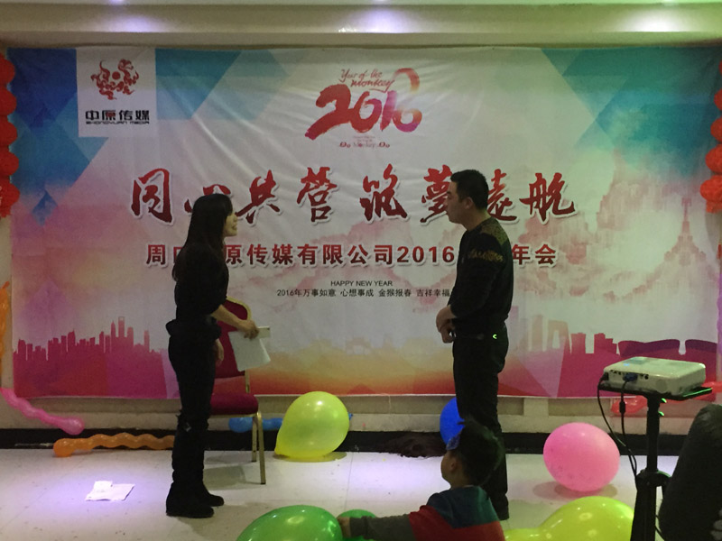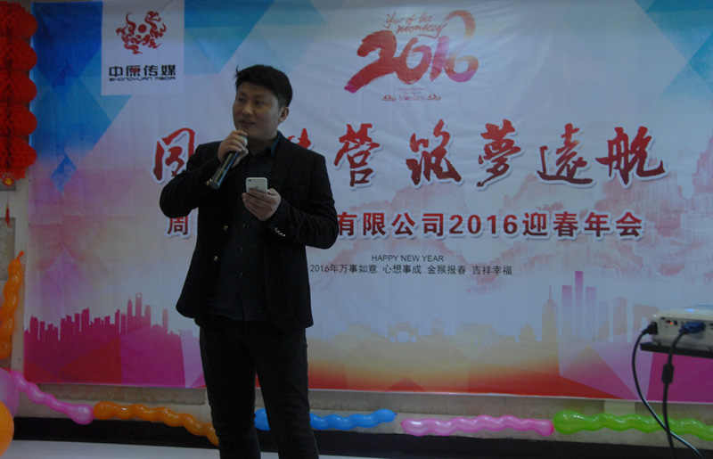 中原傳媒大掌門廖總致辭,感謝中原傳媒全體員工一年以來辛勤的付出,推動了公司長足的發(fā)展,廖總為大家總結(jié)2015,暢談2016,目標堅定,讓大家知道,跟著他走,有肉吃!領(lǐng)導講話飽含深情,催人奮進,我們必將強力助推2016年工作再上一個新臺階!